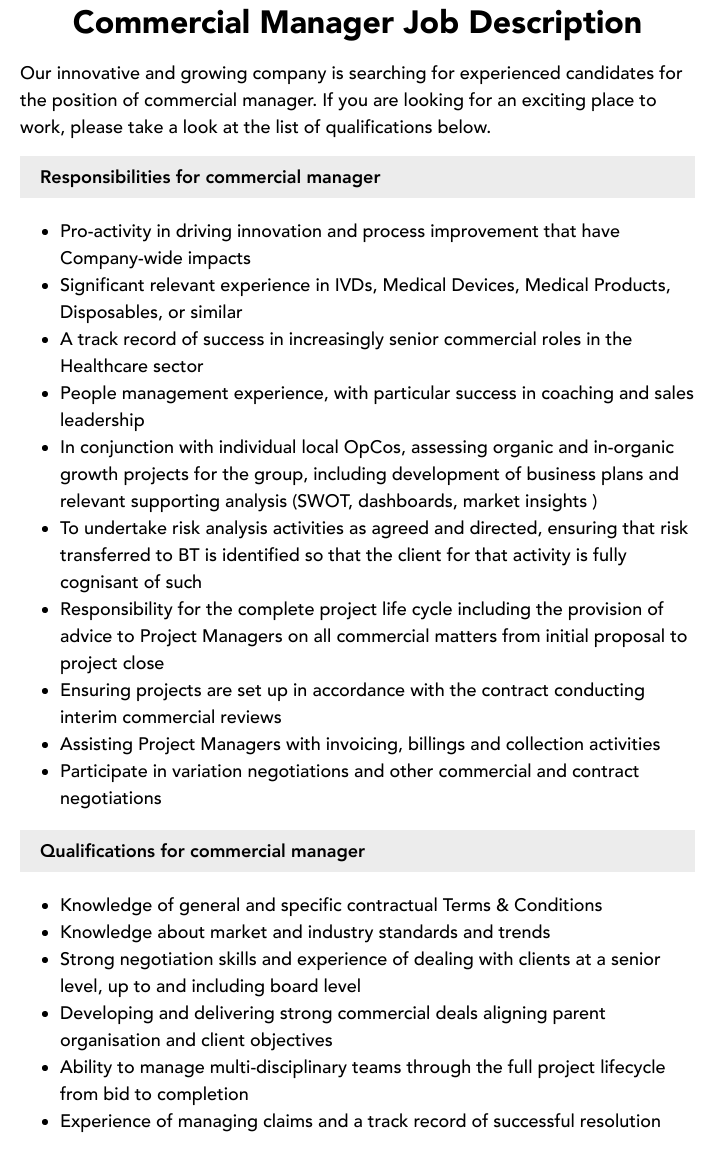 Commercial Manager Job Description Template
