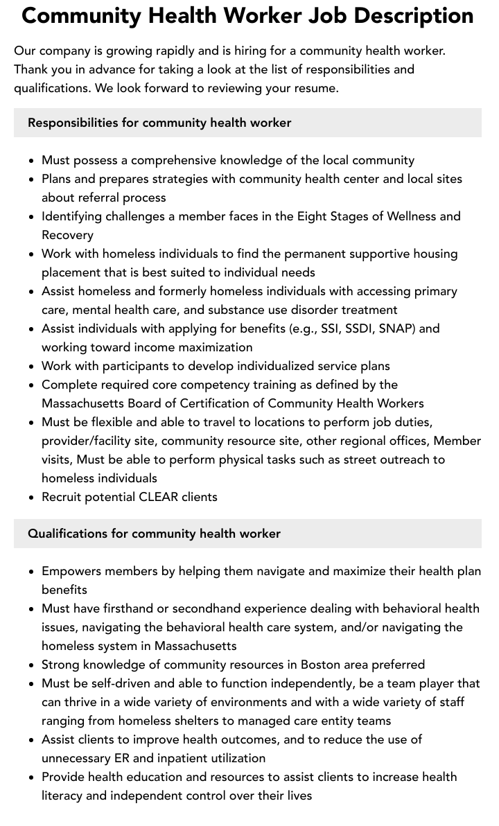 Community Health Worker Job Description Template