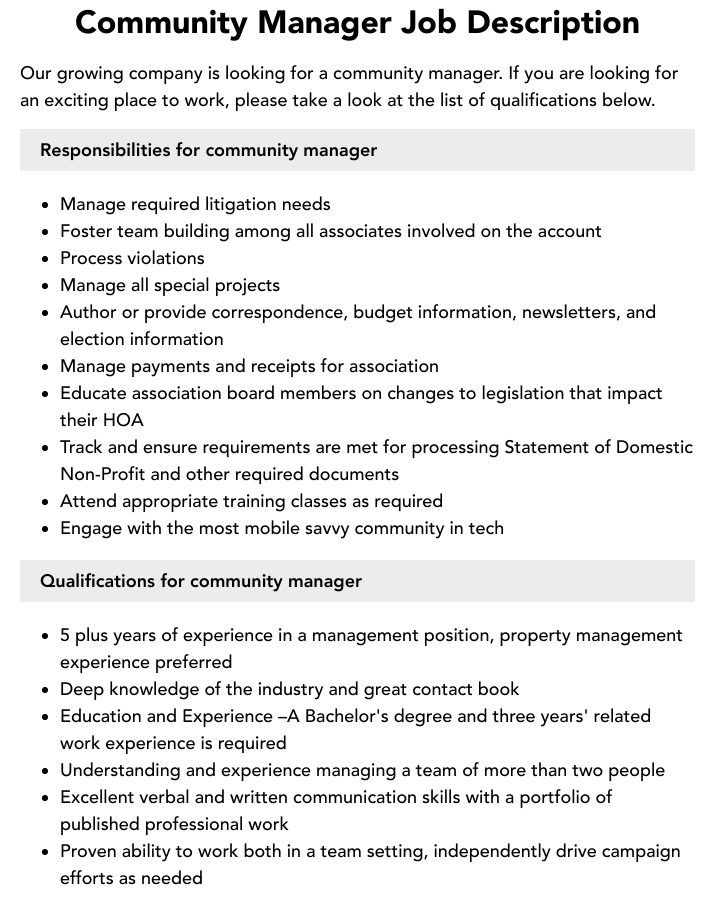 Community Manager Job Description Template