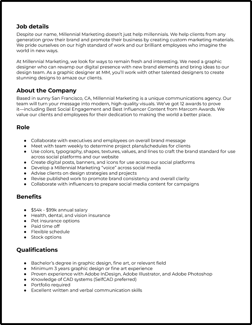 Finding the right talent for your creative team starts with a compelling and clear job description. If you’re looking to hire a new visual maestro, having a well-structured graphic designer ...