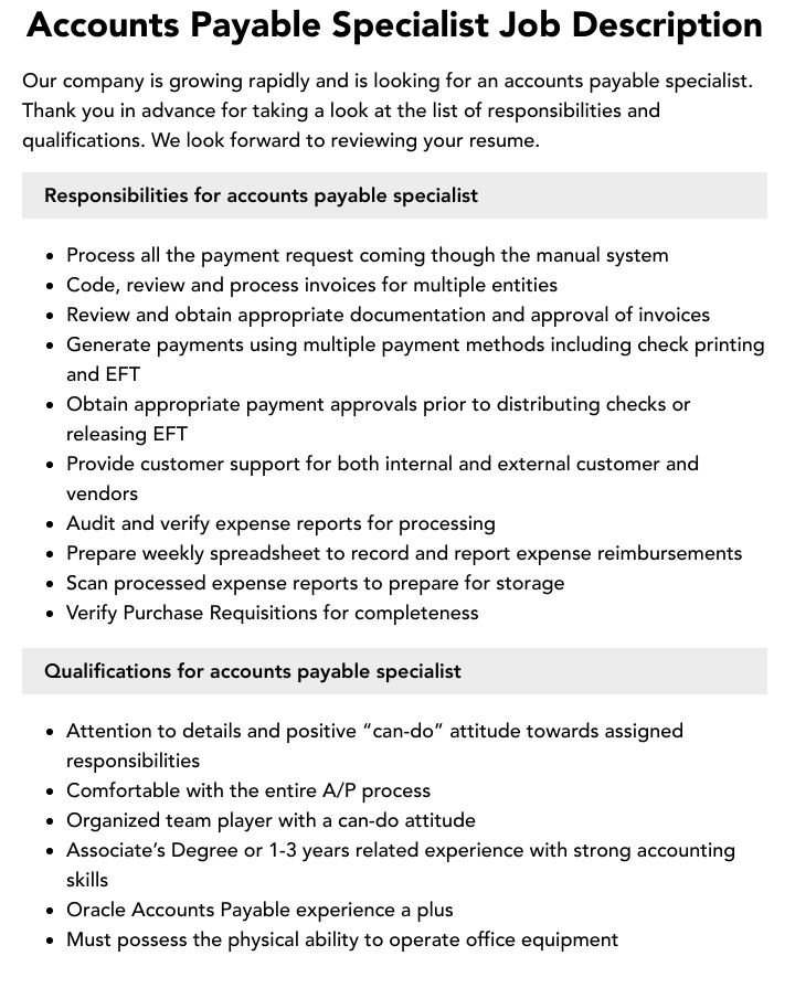 Accounts Payable Specialist Job Description Template