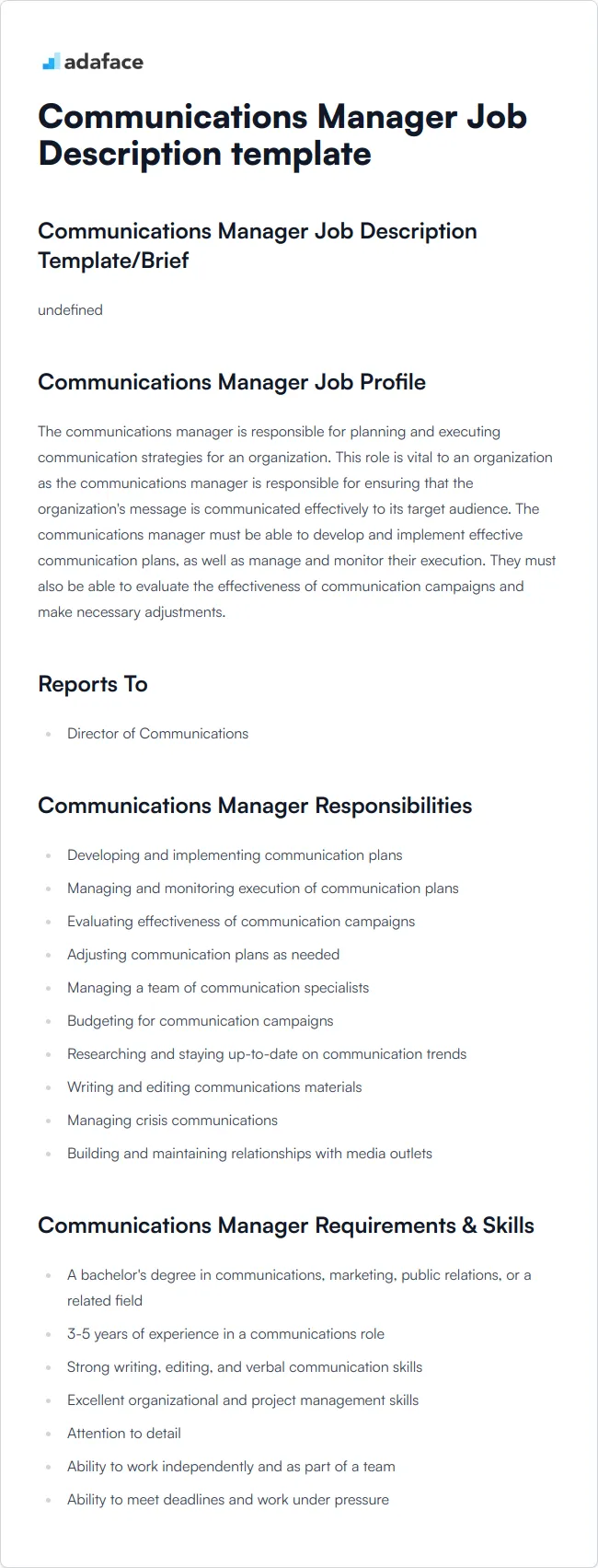 Communications Director Job Description Template
