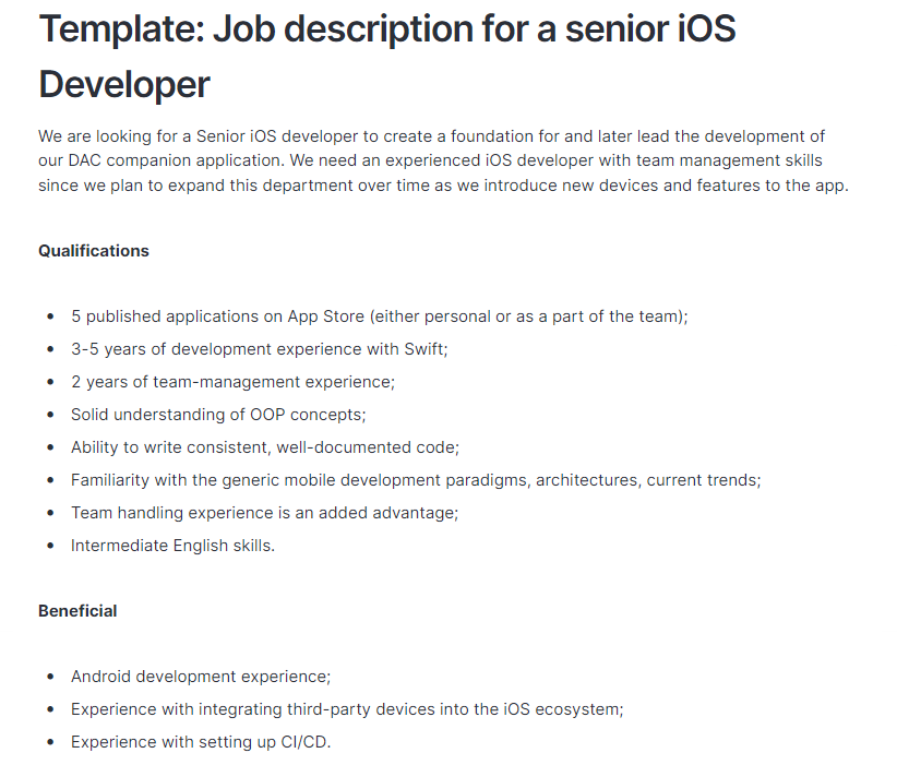 Finding the perfect iOS developer can feel like searching for a needle in a haystack, especially when the market is competitive. A well-written job description is your most powerful tool ...