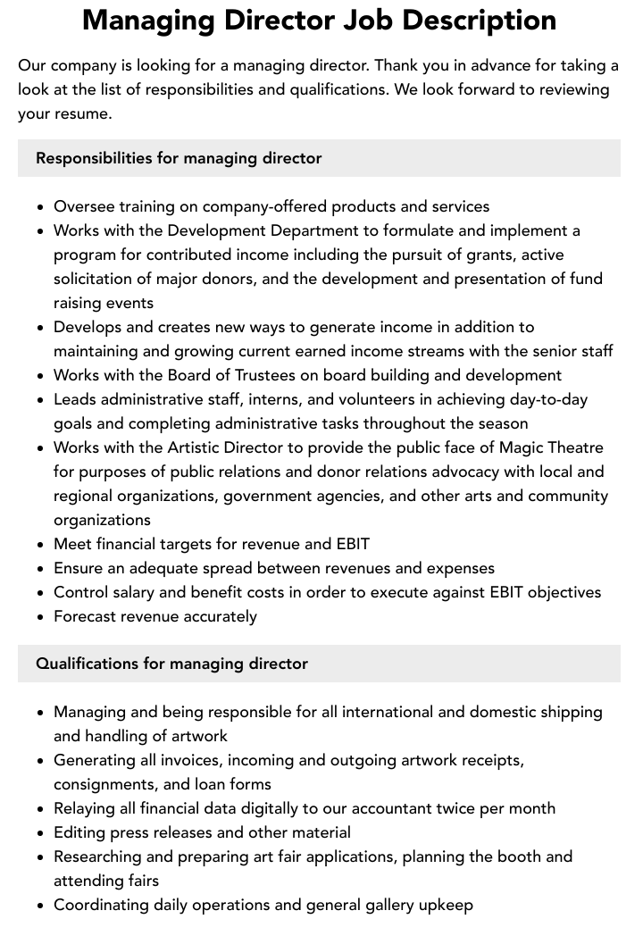 Company Director Job Description Template
