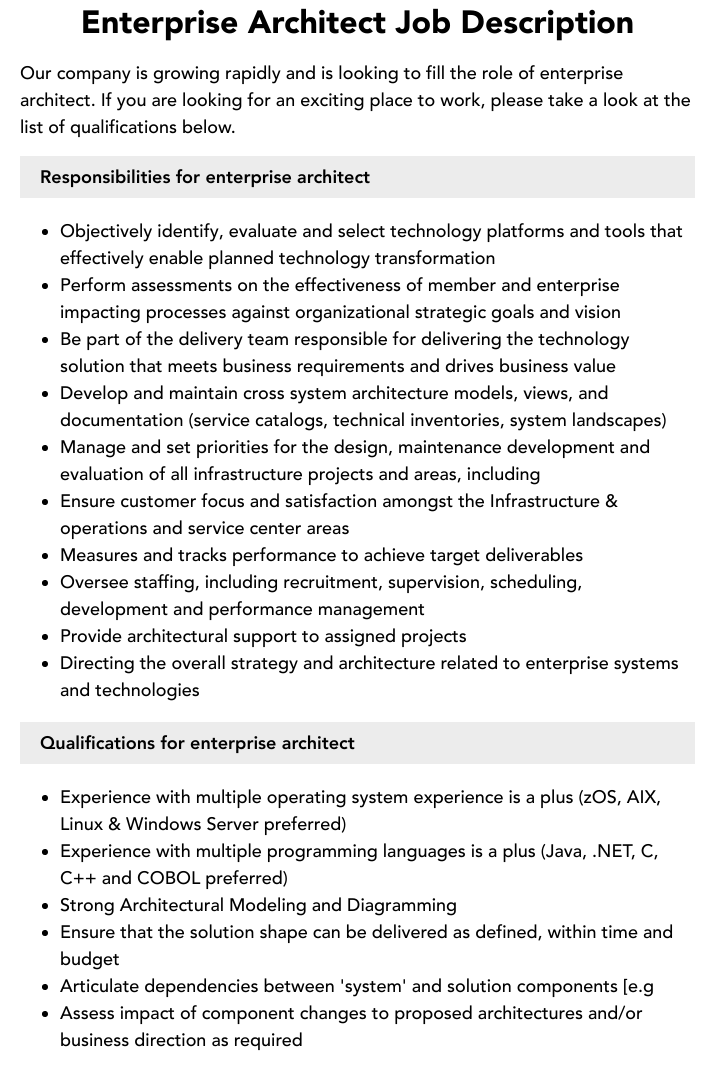 Enterprise Architect Job Description Template