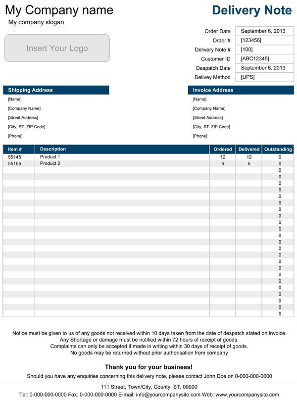 Cargo Delivery Order Template
