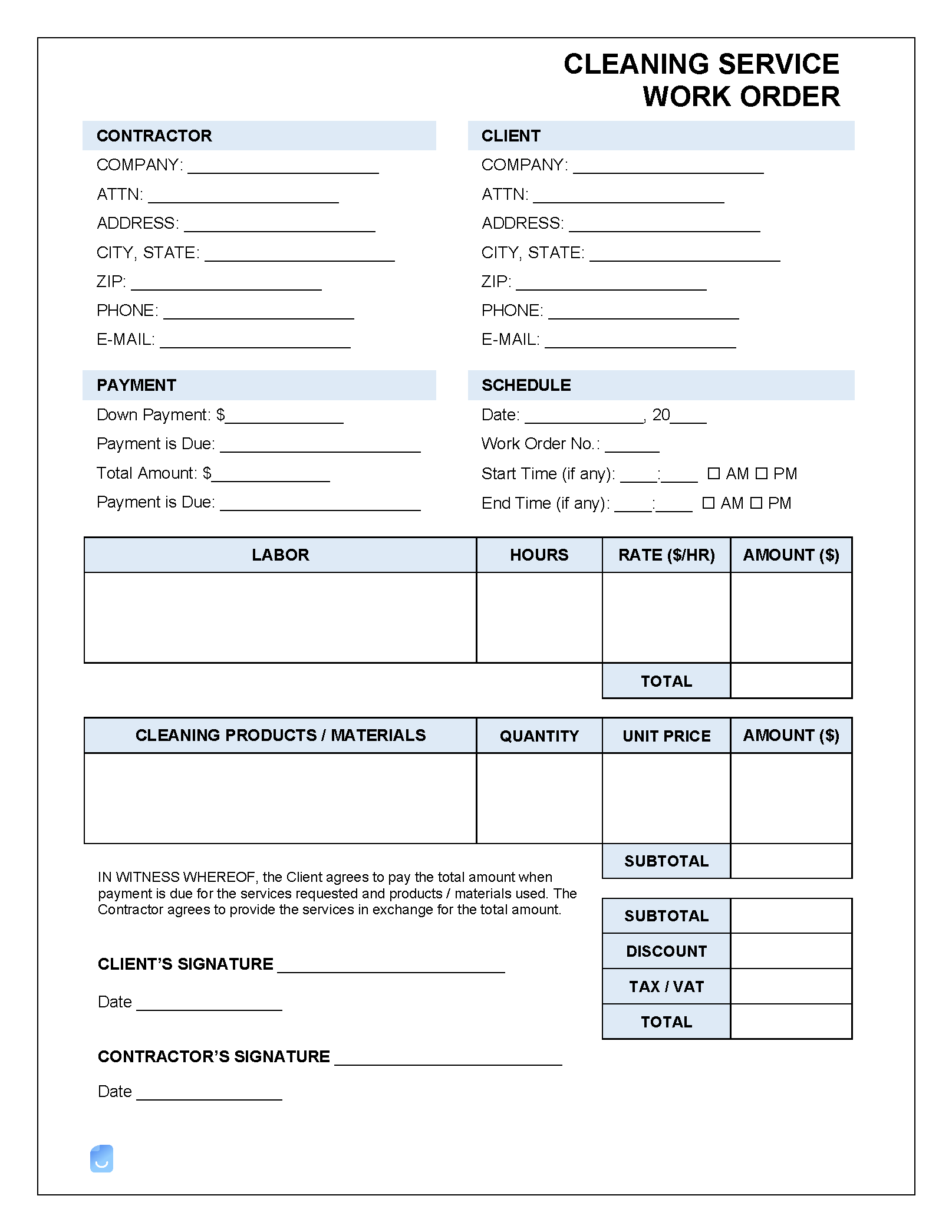 Cleaning Service Work Order Template