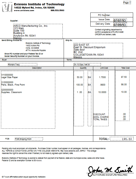 Electronic Purchase Order Template